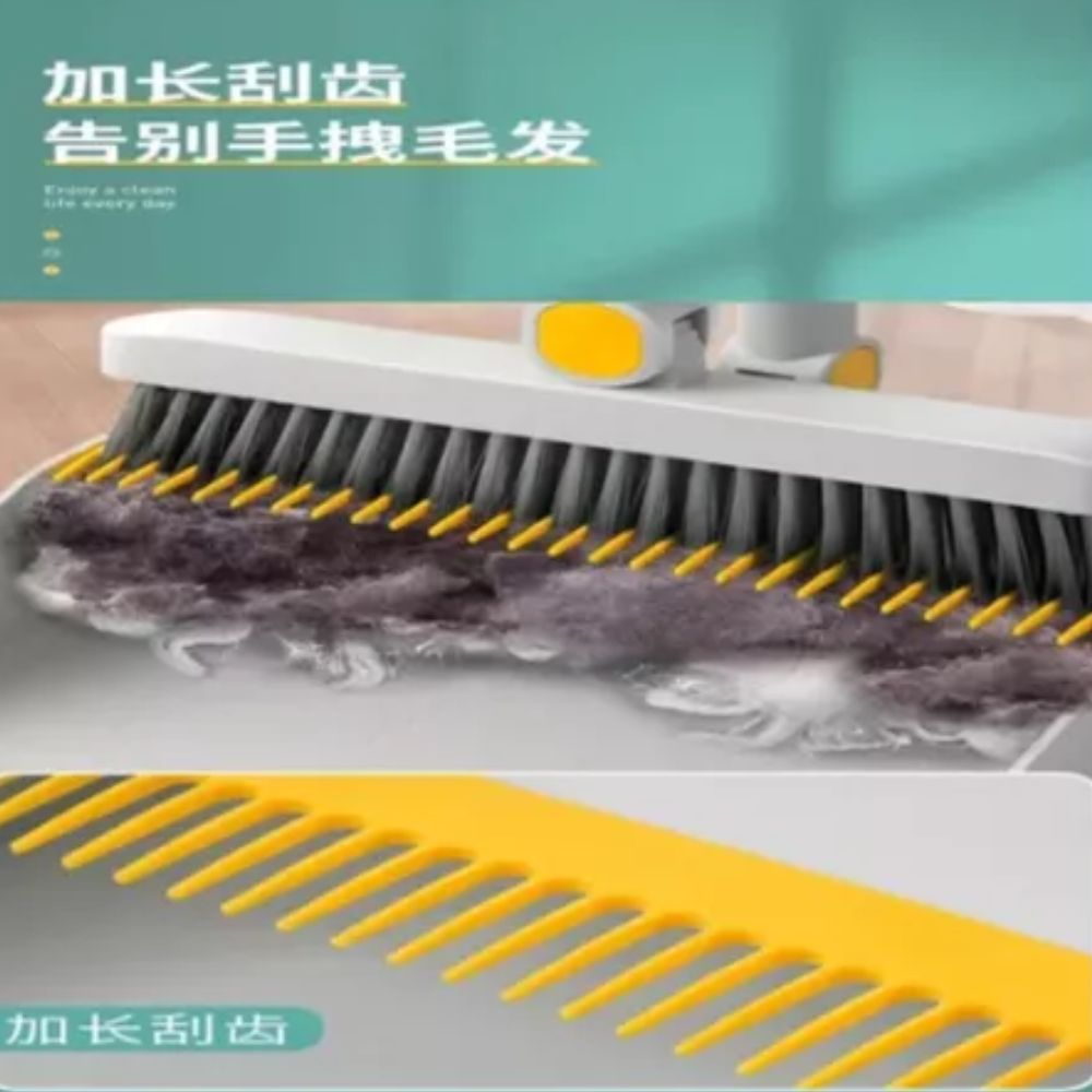 Escoba y Recogedor Plegable con Cerdas Resistentes y Borde Biselado, Mango Largo