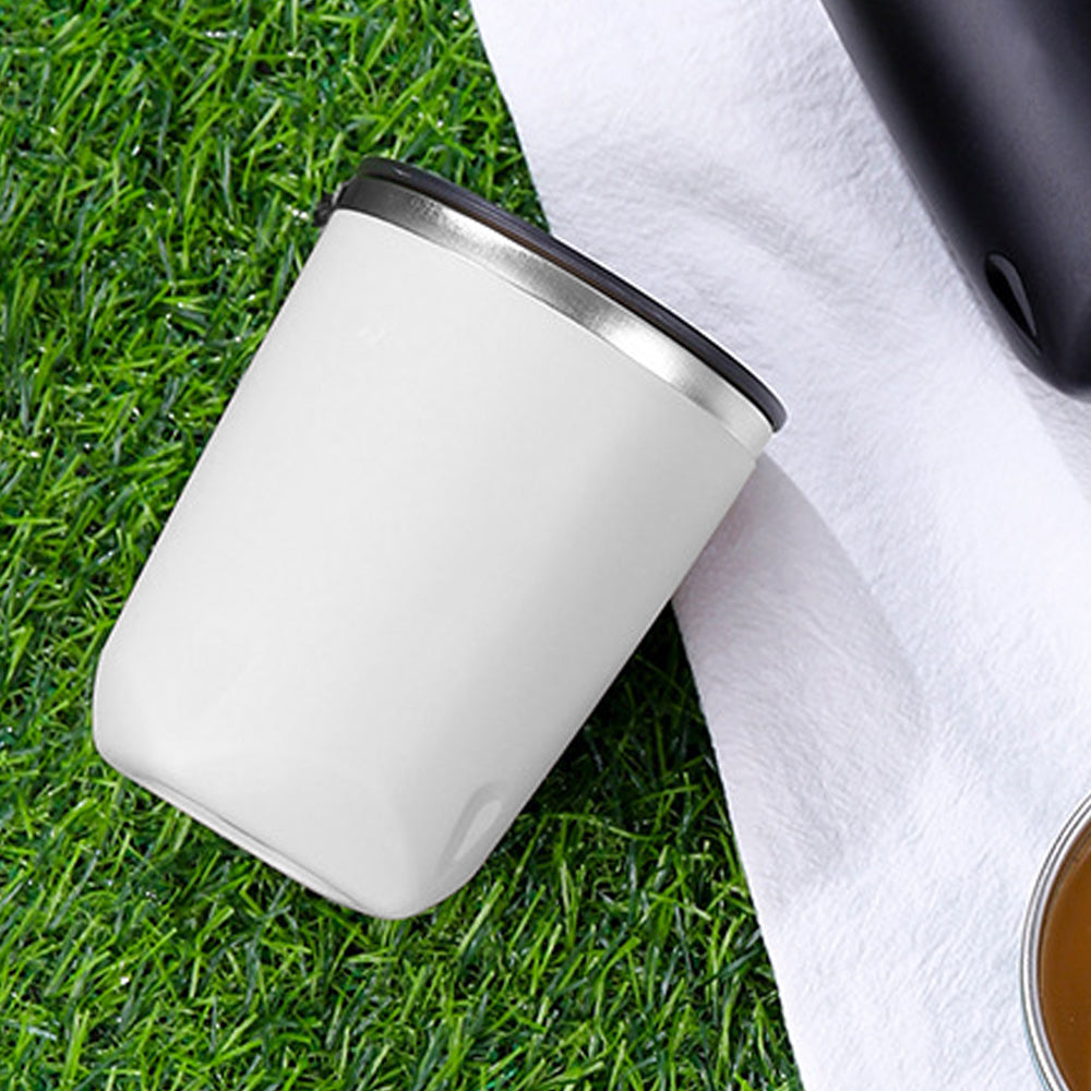 Mug Doble pared en pp y acero inoxidable térmico, conserva la temperatura alrededor de 4-6 horas. De 300 ml. Tapa con cierre de a presión, no es tapa de seguridad. De: 10.5 cm x 8 cm.